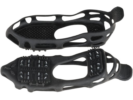 Загострені шипи гарантують хороше зчеплення. Вага тіла розподіляється по дрібній і твердій поверхні шипів, що змушує їх впиватися в лід. Шипи (24 штуки) розташовані в місці найбільшого тиску на землю - 2 одиниці під серединою стопи і 1 під п'ятою. Усі вузли шипів інтегровані на 3 сталеві пластини, одну під п’ятою та дві під середньою частиною стопи. Носок згинається незалежно один від одного і функціонує як шарнір для додаткового комфорту під час ходьби. Шипи розміщені на пластинах симетрично, але під різними кутами. Половина (12) шипів запобігає руху стопи по осі перед-зад, 6 шипів запобігають руху стопи в сторони, додатково 6 шипів запобігають ковзанню стопи під кутом. Шипові вузли із загартованої нержавіючої сталі (оцинкованої).