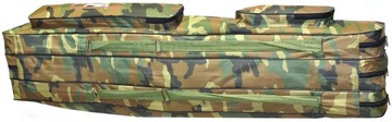 Wykonany z wysokiej jakości materiału wzmacnianego i wodoodpornego z dwustronnymi zamkami. Dodatkowo elastyczna i lekko usztywniana konstrukcja za pomocą taśm węglowych i mocne suwaki. Wszystkie komory otwierane, dzięki zamkom błyskawicznym. Wyposażony w praktyczne regulowane szelki do noszenia na plecach lub przewieszania przez ramię oraz uszy do noszenia w dłoni. Solidny oraz wytrzymały pokrowiec na wędki. Specjalnie wyprofilowany kształt umożliwia przewożenie wędek z zamontowanymi kołowrotkami co znacznie ułatwia i przyspiesza pakowanie. Pokrowiec posiada trzy komory na wędki oraz kieszonkę boczną na dodatkowe akcesoria wędkarskie. Dodatkowo torba posiada dwie mniejsze kieszenie na drobne akcesoria o wymiarach 60x13cm i 30x13cm.