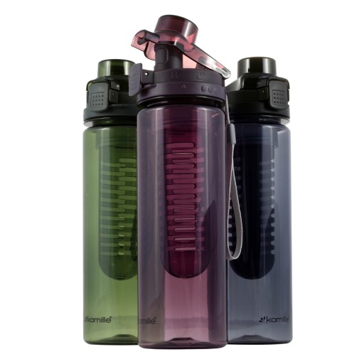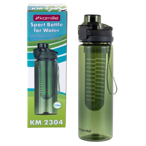 Пляшка Kamille зі вставкою для фруктів або кубиків льоду ідеально підходить для створення ароматизованої води. Виготовлена з високоякісного матеріалу. Він абсолютно безпечний для здоров'я, не містить BPA.