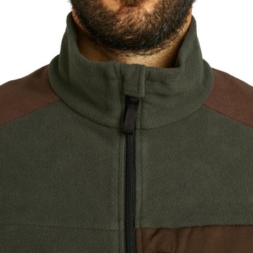 Polar myśliwski Solognac zapewnia ciepło, wygodę oraz komfort noszenia. Polar idealnie sprawdzi się na polowaniu, wędkowaniu oraz podczas innych zajęć odbywających się na świeżym powietrzu w chłodne dni. Wytrzymały materiał oraz wzmocnione szwy zapewniają odporność na ścieranie. Polar na całej długości zapinany jest na zamek błyskawiczny, posiada 5 kieszeni: 2 zewnętrzne na dłonie, 1 na klatce piersiowej wszystkie zapinane na zamek błyskawiczny oraz 2 kieszenie wewnętrzne.