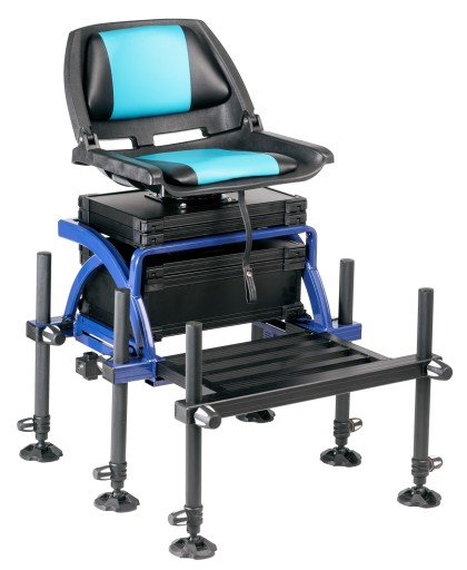 Професійне сидіння на зварному алюмінієвому каркасі. Регульована висота ніжок, шарнірні стопи, можливість установки додаткових касет і ходової системи. Поворотне сидіння правильного профілю. Має: 6 телескопічних незалежно регульованих ніжок діаметром 36 мм з регулюванням кута, що надзвичайно важливо для гарної та стійкої установки платформи, дуже зручне сидіння, транспортувальний ремінь та касети. Він характеризується дуже гарною якістю виготовлення та матеріалів, він дуже легкий, а його найбільшою перевагою є дуже доступна ціна.