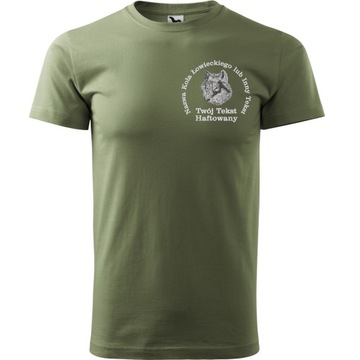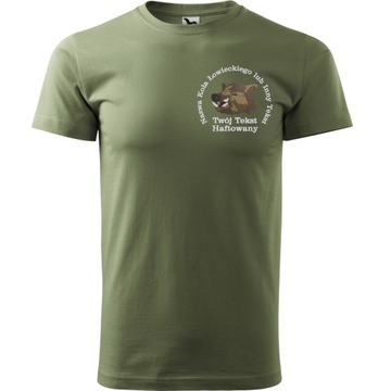 T-shirt z haftem wykonywanym komputerowo z motywem łowieckim i tekstem dowolnym np. Imię, Nazwa Koła, Ksywka itp.