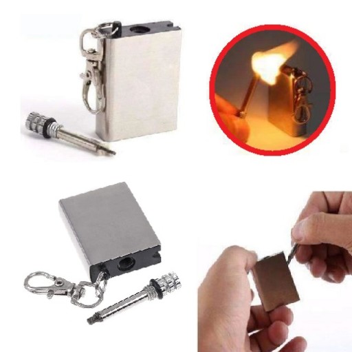 - Практична комбінація бензинової запальнички, кременю та сірника!