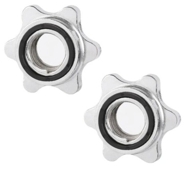 Gwintowane zaciski zapewniają możliwość szybkiej zmiany konfiguracji obciążenia na gryfie. Za stabilność nakładu odpowiadają dodatkowo dwie gumowe uszczelki, które zapobiegają rozkręcaniu się elementów mocujących. Takie połączenie umożliwia trening bez potrzeby poprawiania docisku w trakcie ćwiczeń.