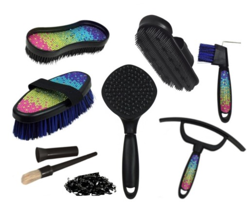 - щітка для гриви та хвоста з ручкою, прикрашеною різнокольоровими кристалами