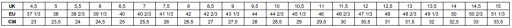 Таблиця розмірів:
