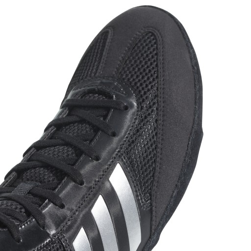 Взуття COMBAT SPEED - борцовська/боксерська модель, яка є продовженням бестселера продажів - моделі Adidas Combat Speed IV. Як і їхній попередник, вони відмінно виступатимуть у найекстремальніших умовах на рингу чи в тренувальному залі. Їх корпус виготовлений із синтетичної шкіри та оснащений сіткою, яка відводить вологу та забезпечує належну вентиляцію.