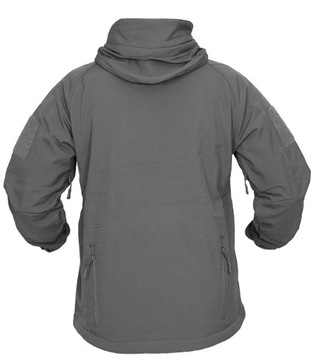 Praktyczny i wygodny krój, rozciągliwy materiał nie ograniczają ruchów. Wysoka stójka zabezpiecza przed wiatrem i deszczem. Zintegrowany kaptur z regulacją wielkości za pomocą elastycznych taśm ze stoperami, które można regulować mając ręce w kieszeniach. Kaptur po zrolowaniu przekształca się w kołnierz wysoki lub niski.