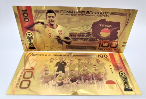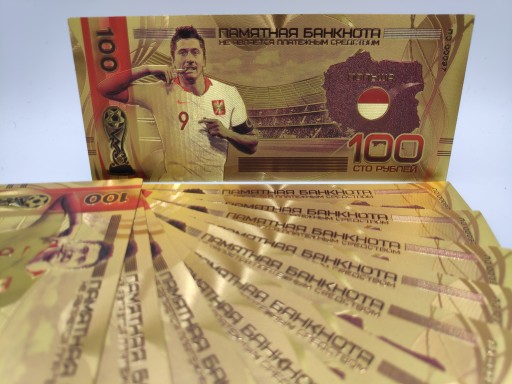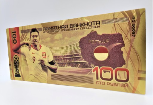 Продам красиву позолочену банкноту номіналом 100 рублів із зображенням Роберта Левандовського.