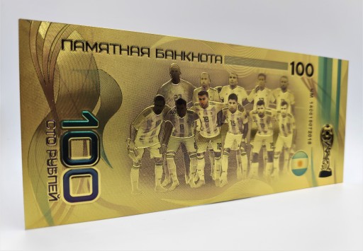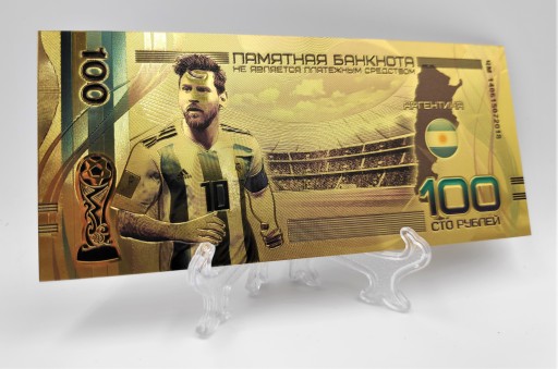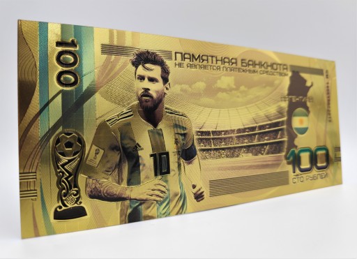 Продам красиву позолочену банкноту номіналом 100 рублів із зображенням Лео Мессі.