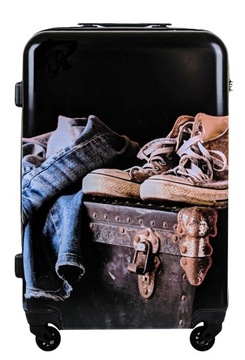 Walizka duża o pojemności 88 litrów francuskiej firmy David Jones z oryginalnym, niespotykanym motywem Jeans w stylu Vintage.