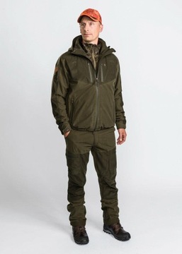 Kurtka myśliwska z wiatro- i wodoodporną membraną oraz dobrą oddychalnością. Klejone szwy. Dwukierunkowy suwak. Odpinany kaptur ze wzmocnionym daszkiem. Suwaki wentylacyjne po bokach. Kieszeń na radio po obu stronach. Dwie kieszenie z przodu. Jedna kieszeń wewnętrzna. Skórzane logo Pinewood.