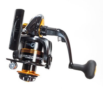 Seria lekkich, świetnie zaprojektowanych i wykonanych kołowrotków spinningowych z precyzyjnym, przednim hamulcem. Niesamowicie uniwersalne kołowrotki sprawdzą się przy metodzie spławikowej i spinningowej na większość popularnych przynęt. Kołowrotki posiadają 11 wysokiej klasy łożysk kulkowych, składaną rączkę, aluminiową szpulę, oraz lekki a zarazem wytrzymały korpus. Komputerowo wyważony rotor zapewnia stabilną i płynną pracę. Kupując ten kołowrotek masz pewność zadowolenia z jego pracy nie wydając majątku.