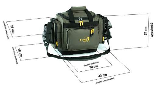 Рибальська сумка Jaxon. Основне відділення 30 см х 20 см х 27 см, куди можна вдало розмістити котушки або інше рибальське спорядження