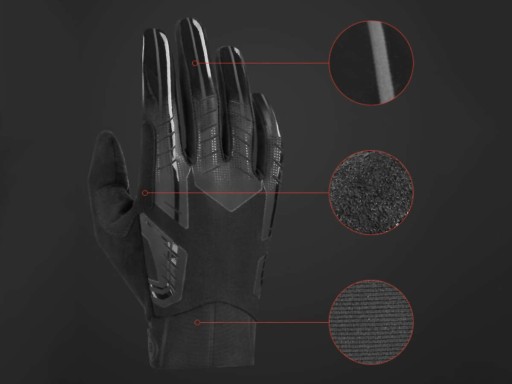 Рукавички оснащені підкладкою з 3 частин SBR товщиною 3 мм, яка стійка до ударів і ударів під час катання. Крім того, рукавички можуть керувати сенсорними екранами.