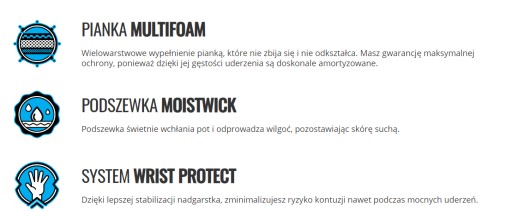У моделі «Самурай» ми використали три види наповнювача з піни Eva, яка стійка до деформації та злипання. Ергономічна форма ідеально захищає руки під час ударів, а застібка з міцною липучкою забезпечує ідеальну стабілізацію зап'ястя.