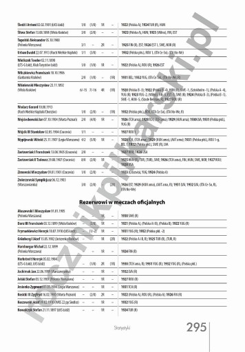 Статистична частина включає, серед іншого: всі запасні з офіційних і неофіційних матчів. Вітольд Ластовецький вперше представив повний список форми польської збірної.