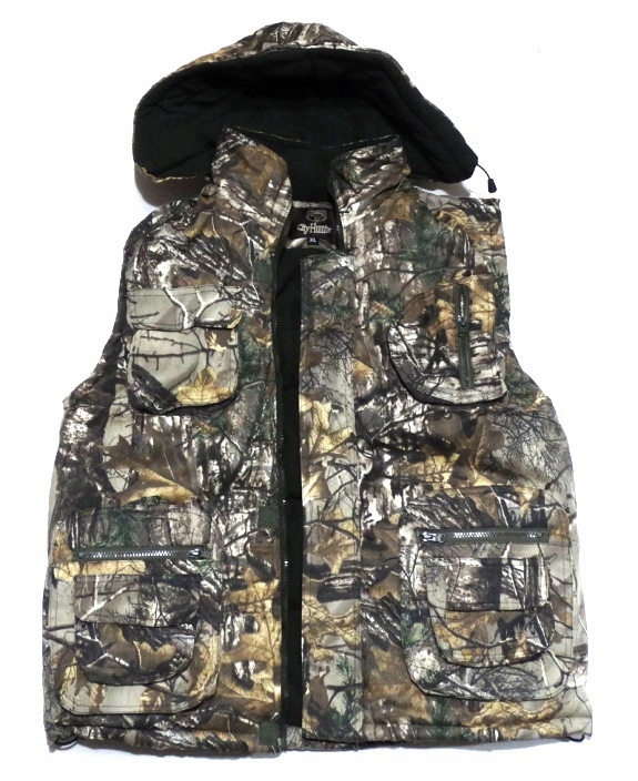 Gruba kamizelka  wykonana z materiału  35% bawełna, 65% poliester. Posiada membranę, dzięki czemu nie przemaka i chroni przed  wiatrem, mrozem. Wewnątrz podszyta polarem w kolorze ciemnozielonym. Dostępne różne rozmiary:  M, L, XL, XXL, 3XL, 4XL. Kamizelka zapinana na suwak i na rzepy.