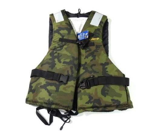 Страхувальний жилет для рибалок від авторитетної компанії «ОЛІМП» призначений для використання в захищених водоймах, зокрема для мисливців і рибалок. Виготовлений з тканини камуфляжного кольору, що дозволяє «зливатися» з фоном. Жилет дуже простий у використанні та підлаштовується під тіло користувача. Застібається на пряжку. Конструкція жилета забезпечує свободу рухів чоловікові, одягненому в легкий одяг. Його безпечно носити, легко одягати та використовувати. Жилет має плавучість не менше 50 Н. Застосовувана плавучість дозволяє легко утримувати людину на воді. Доступні розміри M, XL, XXL.