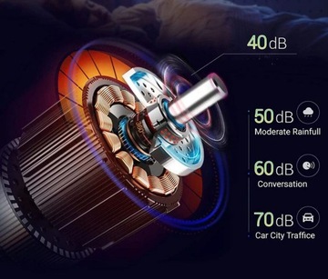 Głośność urządzenia wynosi zaledwie 40 dB co powoduje, że uradzenia jest o około 25% cichsze niż szum padającego deszczu.