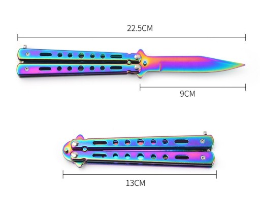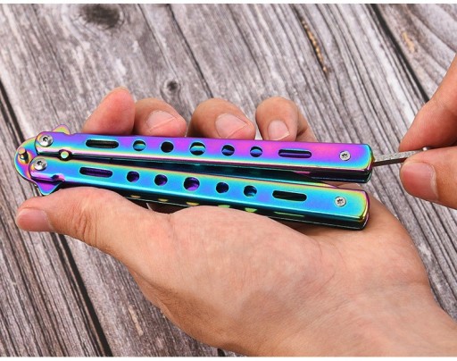 Чудове рішення для всіх, хто хоче навчитися користуватися ножем, уникаючи порізів. Наш ніж-метелик має тупе лезо, тому жоден трюк не буде небезпечним.