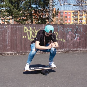 Solidna drewniana deska ma szorstką powierzchnię, która zapobiega ślizganiu i zapewnia lepszy chwyt. Ograniczniki bezpieczeństwa na spodzie deski są idealne dla początkujących, ponieważ pozwalają im poczuć się pewniej. Cylinder o średnicy 10,5 cm zapewnia idealny kąt przechyłu.