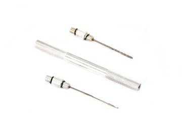 Zajmuje minimum potrzebnego miejsca.Baza (uchwyt) pozwala przykręcić po obu stronach wiertło oraz igłę.