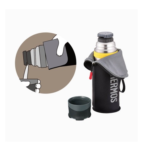Термоупаковка для термоса Mountain FFX ємністю 0,75 л з неопреновим сердечником, який захищає термос від пошкоджень і розширює його термічні властивості. Зовнішня частина виконана з нейлону і поліуретану, внутрішня - з поліестеру. Завдяки особливій конструкції упаковка дозволяє розливати напій, не виймаючи її. Основні характеристики та елементи упаковки: