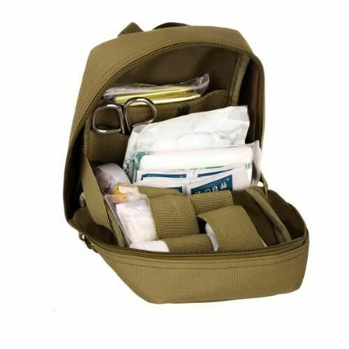 ➡️Кількість еластичних лямок всередині дозволяють налаштувати обладнання відповідно до потреб користувача. Зовнішня панель, оброблена MOLLE-сумісними стрічками, дозволяє кріпити додаткові елементи медичного обладнання. Верхній ремінь має панель-липучку, завдяки якій ви можете персоналізувати свою аптечку.