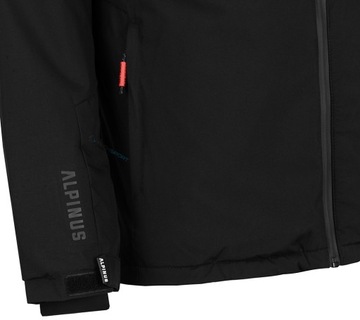Regulowany kaptur z wysokim kołnierzem osłoni głowę przed niekorzystnymi warunkami atmosferycznymi, a ocieplany mikropolarem kołnierz ochroni przed podmuchami zimnego powietrza. Rękawy wyposażono we wstawkę z elastycznego materiału, która stanowi wygodny ochraniacz dłoni przed niskimi temperaturami. Mankiety kurtki można dodatkowo regulować za pomocą specjalnych rzepów z delikatnie sygnowanym logo Alpinus. Kurtka posiada także praktyczną tasiemkę, ułatwiającą jej wygodne wieszanie.