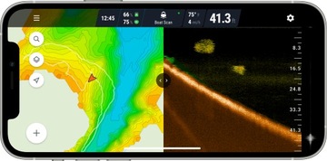 - tworzenie map z brzegu z wykorzystaniem GPS - Wystarczy zarzucić echosondę, a następnie zwinąć żyłkę, aby utworzyć szczegółowe mapy na żywo na ekranie smartfona. Deeper PRO+ 2 umożliwia tworzenie map batymetrycznych z brzegu.