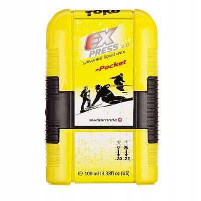 Express Pocket Toko - мастило з домішкою фтору (гідрофобна сполука), що значно покращує ковзаючі властивості, підходить для будь-яких температурних і снігових умов.