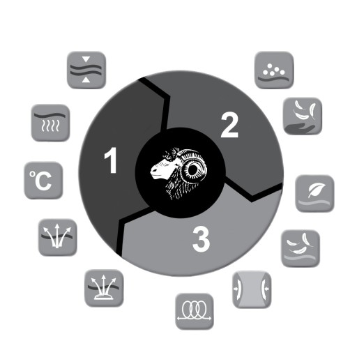 Першокласна сировина: м'яка і ніжна 100% мериносова овеча шерсть, дуже тонка - волокна товщиною 16,5 мікрон. Оздоровчі властивості: мікромасаж, благотворний вплив на нервову систему, підтримка правильного кровопостачання клітин і поліпшення кровообігу.
