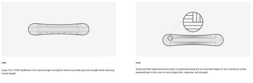 Серцевина: Super Fly II 700G Splitboard Core and Squeezebox - використовуються міцніші та легші породи деревини, які забезпечують ефектність і міцність, одночасно зменшуючи загальну вагу