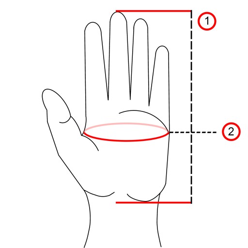 Виміряйте довжину й окружність вашої руки, а потім порівняйте їх із наведеними нижче вимірюваннями.