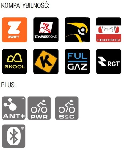- Сумісність із програмами та програмним забезпеченням сторонніх виробників, комп’ютерами, смартфонами, планшетами, велокомп’ютерами з ANT+™ Power, Ant+™ Speed & Cadence і Bluetooth