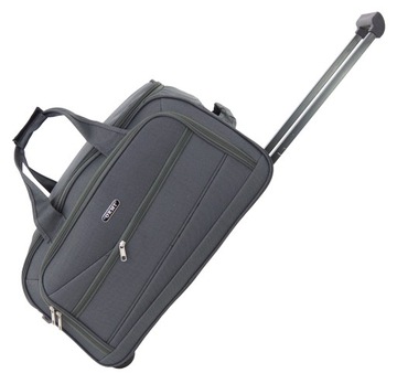 Prezentowana poniżej torba wykonana jest z mocnego materiału CODURA. Posiada dwie zewnętrzne kieszenie na suwak oraz dwie mniejsze, boczne, wewnętrzne kieszonki na Twoje drobiazgi. Dwa kółka, ułatwiają prowadzenie, a wygodne rączki boczne przenoszenie.