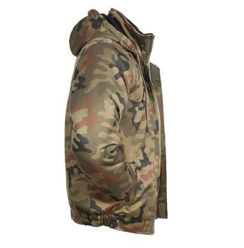 Wojskowa Kurtka Ocieplana z Kapturem wz 93 uszyta z tkaniny mundurowej US 18 - używana może do każdego ubrania militarnego. Wykonana jest z niezwykle trwałego i odpornego na zużycie materiału US18 wz93. Z materiału tego szyte były legendarne mundury wz127a, słynne mundury polowe produkowane do 2010 roku.