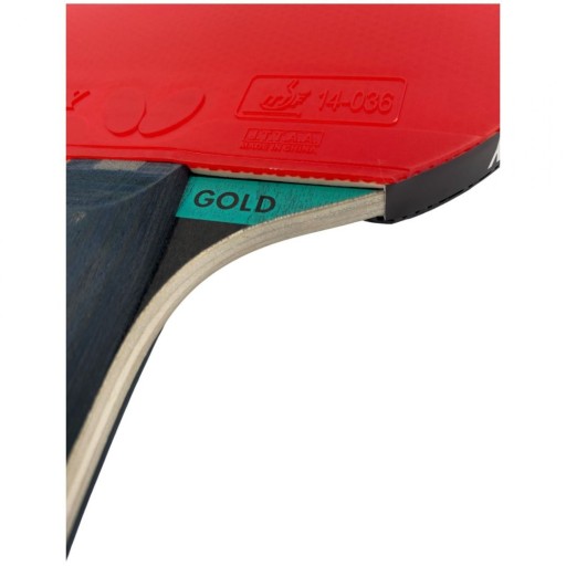 Butterfly DIMITRIJ OVTCHAROV GOLD – тренувальна ракетка, призначена для досвідчених гравців. Схвалена ITTF гума Addoy з губкою товщиною 1,5 мм, технологія Ergo Grip та інноваційний шар EVA забезпечують різноманітну гру в нападі та захисті.