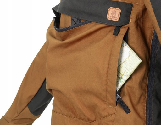 Куртка-анорак, виготовлена в рамках лінії Helikon-Tex Bushcraft. Спереду використовується тканина DuraCanvas, яка стійка до іскор і механічних пошкоджень. Спинка виконана з еластичної тканини StormStretch, завдяки чому куртка не сковує рухів. Все це дихаюче і вітронепроникне.