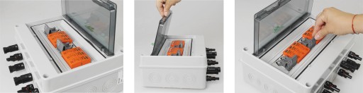 - Розподільний пристрій має кабельні вводи та роз’єми MC4.