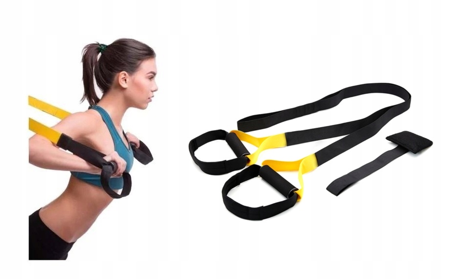 - taśm treningowych bez regulacji o długości 115cm zakończonych uchwytami i karabińczykiem
