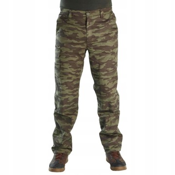 Spodnie są odporne na kontakt z dziką roślinnością, tkanina bawełna/poliester jest bardzo wytrzymała na przetarcia, spodnie szyte bardzo wytrzymałą nicią, posiadają podwójne szwy w kroku oraz podwójnej grubości materiał na kolanach. Półelastyczny ściągacz w pasie zapewnia dobre trzymanie i sprawia, że spodnie pasują na każdą sylwetkę. Spodnie posiadają dwie kieszenie po bokach na ręce oraz jedna z boku z zapinaną klapką. Spodnie są lekkie i wygodne ich waga to 510 g w rozmiarze L.