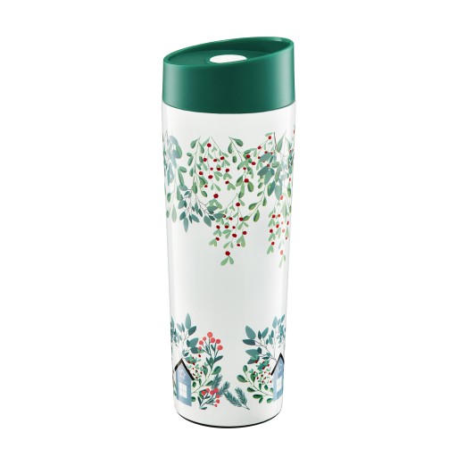 Двостінна термокружка Greenery загальною ємністю 350 мл білого кольору з тонким малюнком, який завдяки насиченим кольорам стає виразним і виглядає дуже ефектно. Кружка виготовлена з нержавіючої сталі найвищої якості. Він має дуже практичний автоматичний стопор Click-Clack для відкривання та закривання, а також контурну форму для зручного тримання в руці. Він підтримує як високу, так і низьку температуру. до 6 годин.