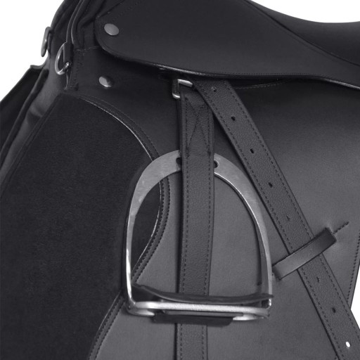 Гарне сідло з високоякісної натуральної шкіри (100%) розроблено на основі поєднання естетики та практичності. Сідло посилено в кожній точці тиску для додаткової міцності. Чохол для сідла, виготовлений з поліестеру, добре підбитий для комфорту коня та може бути відокремлений для легшого чищення. Металеві стремена досить міцні, щоб прослужити багато років. І ремінь на стремені, і обхват міцні, що забезпечує безпеку під час катання.