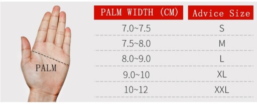 Рукавички доступні в різних розмірах, в залежності від ширини руки: