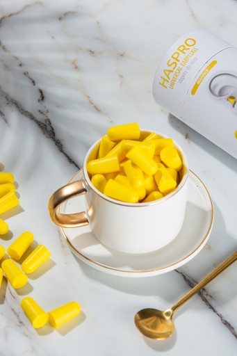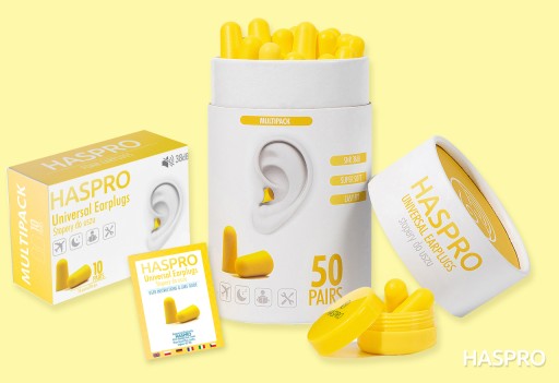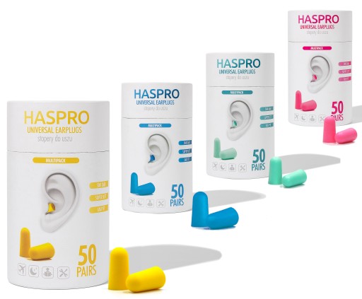 Haspro Tube50 – це сучасна збірна упаковка у вигляді туби, що містить 50 пар одноразових берушів із зручного та надзвичайно ніжного пінополіуретану, які легко вставляються в кожне вухо менш ніж за хвилину.