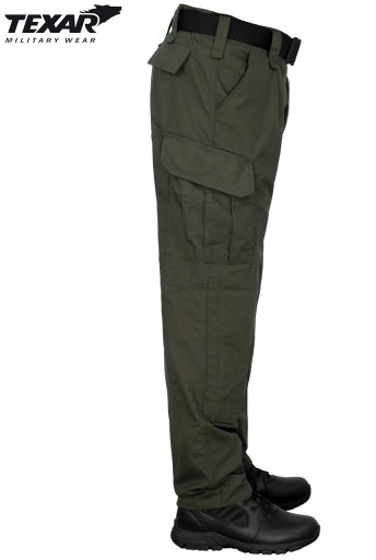 Військові тактичні штани Texar Wz10 Rip-Stop ідеально підходять для складних польових умов і в полі. Виготовлені з тканини POLI-CO, яка являє собою комбінацію бавовни (45%) і поліестеру (55%), укріплена сіткою Rip-Stop, завдяки чому штани характеризуються підвищеною стійкістю до стирання і розривів.
