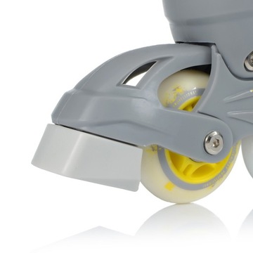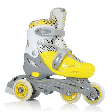 to czysta radość z jazdy. Dzięki możliwości przełożenia dodatkowego kółka na tylną oś, łyżworolka funkcjonalnie zmienia się na rolko wrotkę. To rozwiązanie pomoże najmłodszym rolkarzom stawiać swoje pierwsze kroki w tym sporcie. Z kolei zamontowanie dodatkowego kółka na przednią oś sprawia, że produkt zmienia się w wrotkę. Łyżworolka wyposażona jest w specjalną aluminiową płozę oraz hamulec co zapewnia bezpieczeństwo podczas jazdy. Z kolei kółka oraz łożyska klasy ABEC7 pozwalają na mniejsze opory toczenia, czyli szybszą jazdę