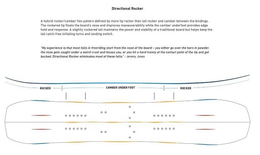 вигин: 3D CAMBER - посередині Розвал з боків Rocker - цей вигин дозволяє, завдяки зоні розвалу між кріпленнями, сильний відскок під час стрибка, зони rocker забезпечують стабільність і більш спритну їзду